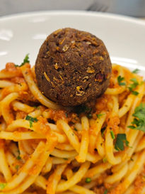 Indulge in our delicious Vegan Meatball Marinara, featuring our house-made vegan meatballs nestled in a rich, fresh tomato sauce. Tossed with perfectly cooked spaghetti and a blend of spices, this dish is a delightful and satisfying for everyone. Enjoy the comforting flavors classic Italian cuisine, reimagined for a plant-based lifestyle!